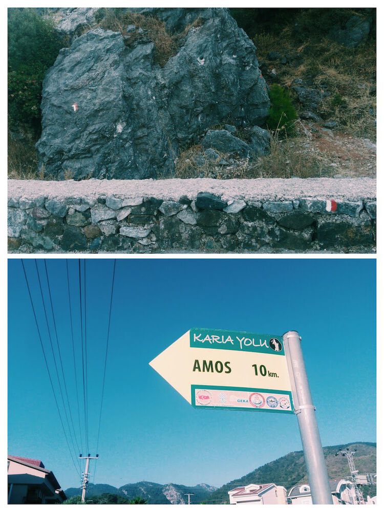 Sabah 07.00 sularına Marmaris Otogar’a ulaşıp hemen otogarın giriş kısmında yer alan İçmeler dolmuşuyla İçmeler’e aktarma yaptım. Yaklaşık 30 dakikalık bir hareketin ardından rotaya en yakın marketin önünde inerek yiyecek ve içecek alımı gerçekleştirdim. Ara sokaklardan ilerleyerek ilk tabela ve ardından ilk işaretin olduğu duvarı geçerek Amos’a doğru ilerlemeye başladım.